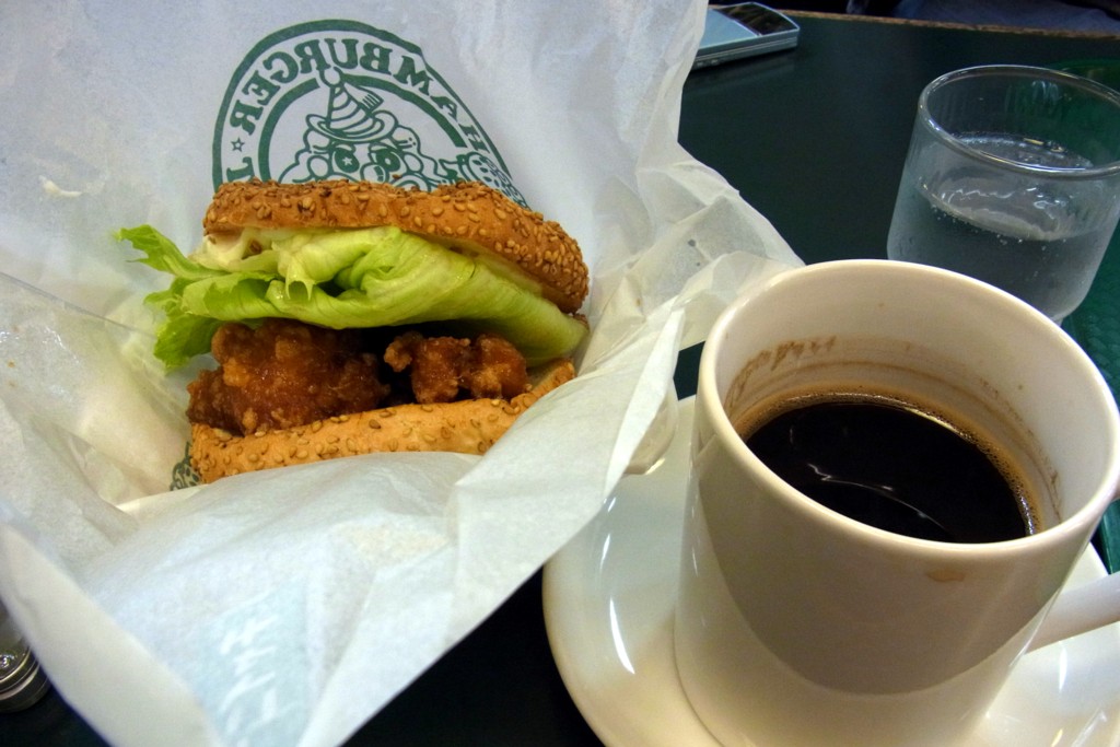 いつものように迷い始めてしまったので、もうこれは一番人気を頼むしかない!と注文したのが、<チャイニーズチキンバーガー>と珈琲。