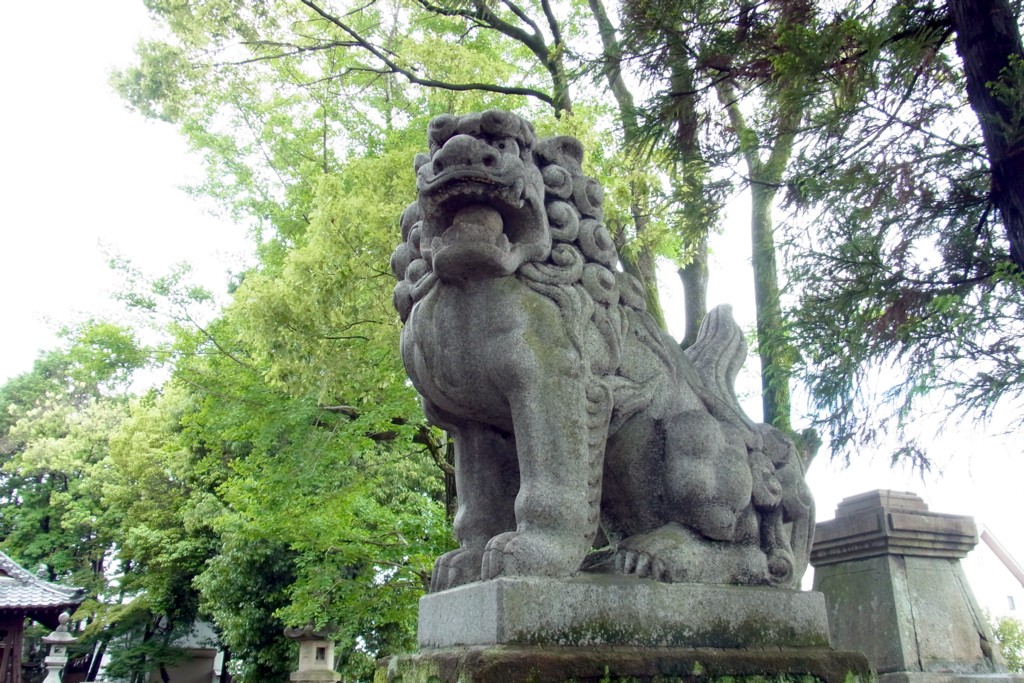 <狛犬・吽形>はなんだかプレデターみたいに境内の木々に同化している。
