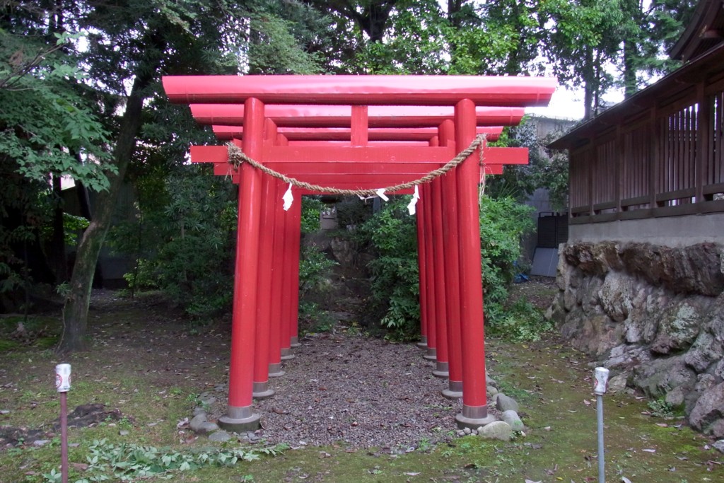 <拝殿>の右手に赤い鳥居があって、奥へ進むと<稲荷神社>がある。