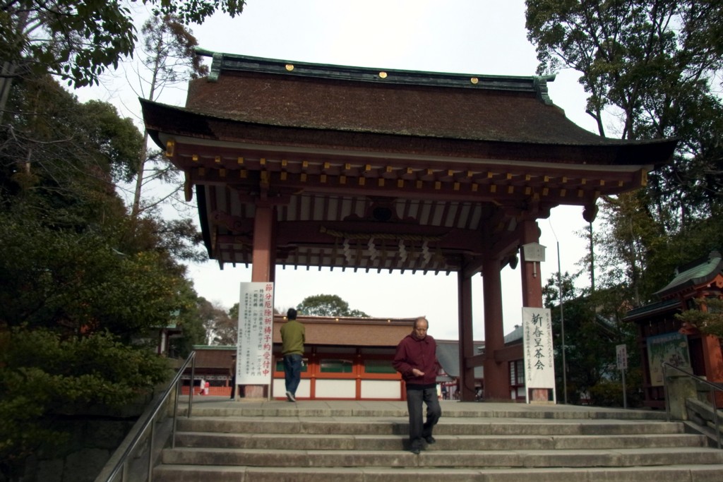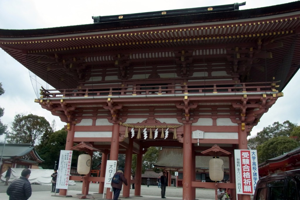 <拝殿>に向かって右手にある<楼門>は、1591年に豊臣秀吉により寄進されたもの。