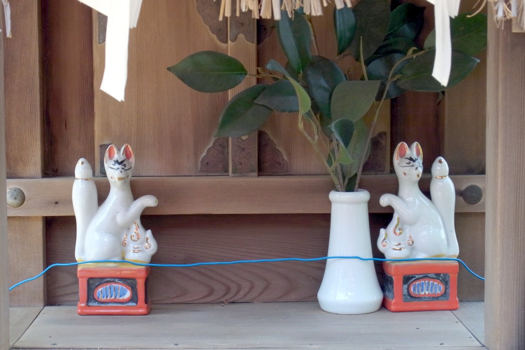 かわいい陶製の<狛狐>はちゃーんと阿形と吽形になってる(≧▽≦)ノ