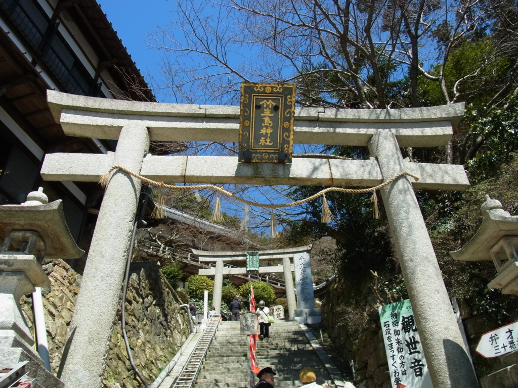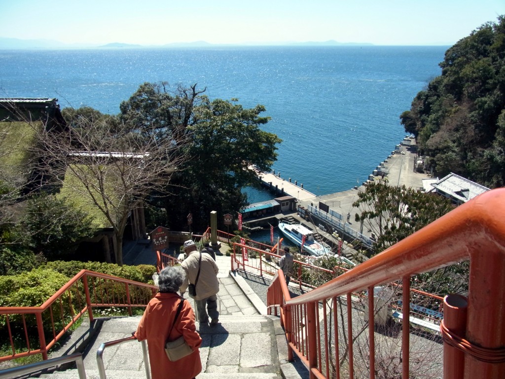 入島料400yenのチケットを買うと、さっそく165段の階段が。