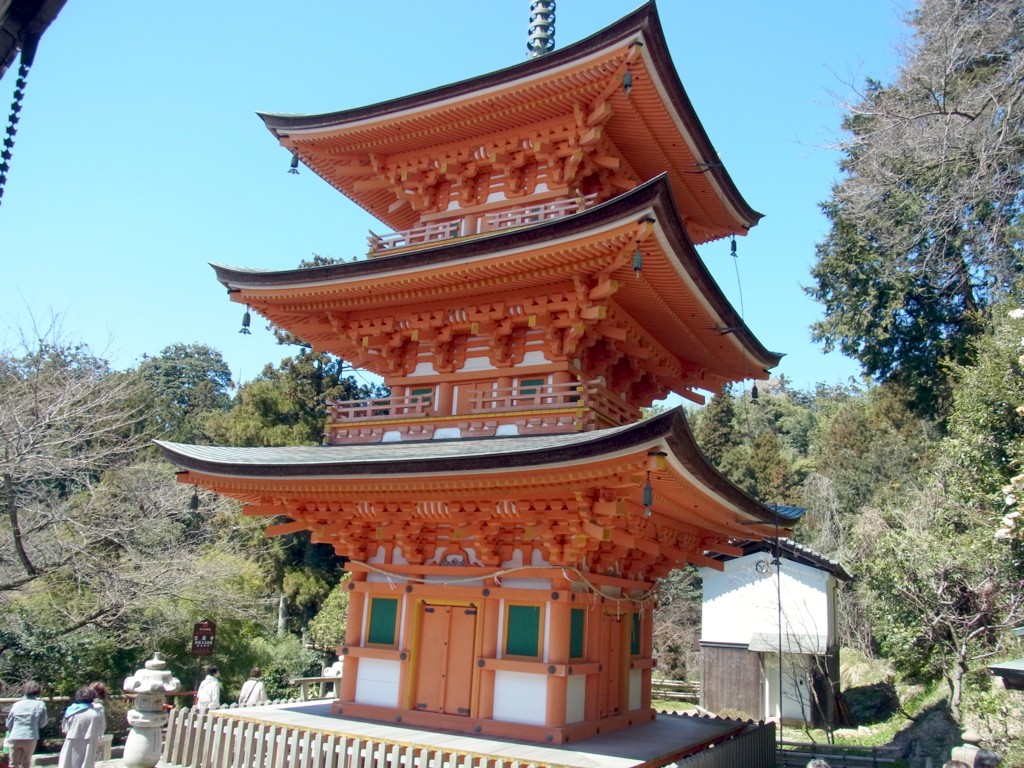 この<三重塔>は江戸時代初めに落雷で焼失したものを2000年に再建したもの。
