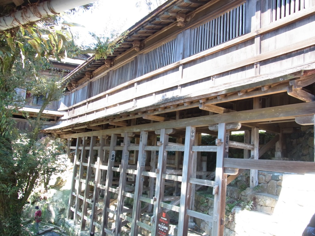 外側からみるとこんな感じで、すごい急斜面にかけられているのだ。