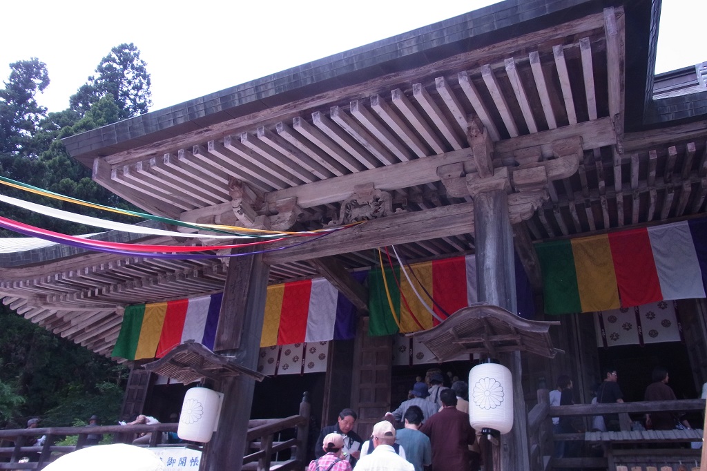 ここが立石寺の本堂で、この中に今回御開帳の本尊<薬師如来像>がいらっしゃるんだけど、本堂に入ってからまた長い行列。